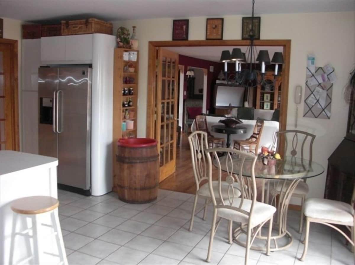 Our Westhampton beach vacation home rental has wooden floring throughout, huge vaulted ceilings and a big great room with fireplace.